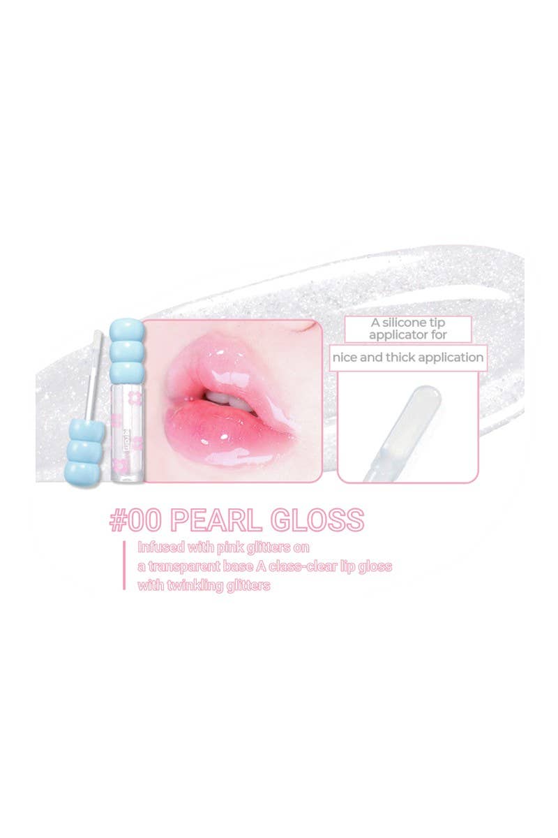 Un brillant à lèvres transparent à paillettes roses. Procure un léger effet repulpant. Hydratant et durable, sans sensation collante.