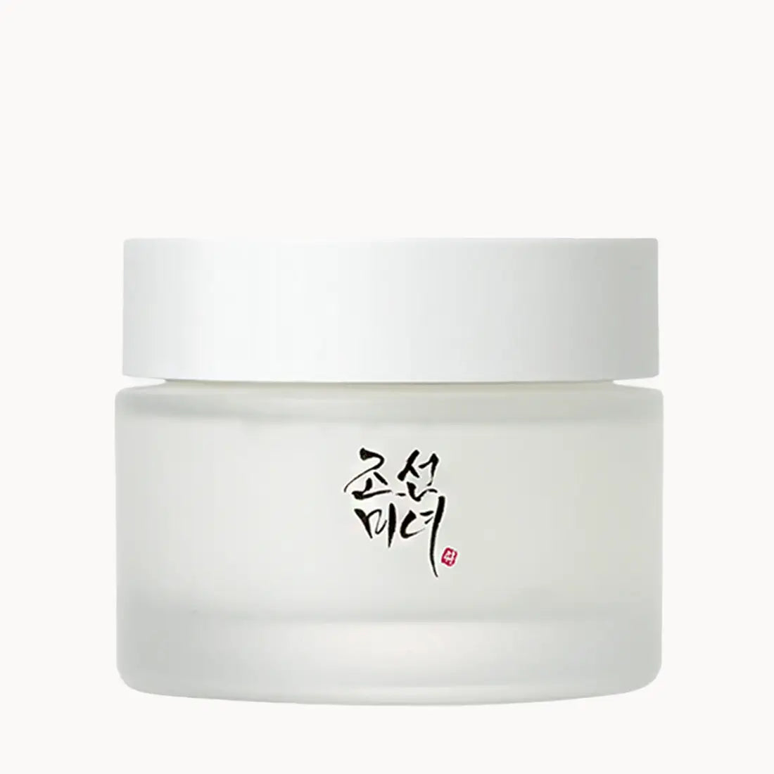 La Dynasty Cream de Beauty of Joseon, enrichie en eau de son de riz et en racine de ginseng, hydrate, régule le sébum et illumine la peau, lui offrant un fini radieux et naturel.