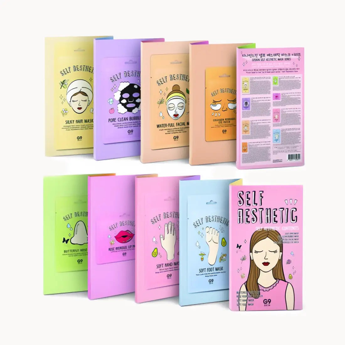 - Self Aesthetic Soft Foot Mask : un masque pour les pieds qui élimine les cellules mortes et hydrate la peau pour des pieds doux et lisses.